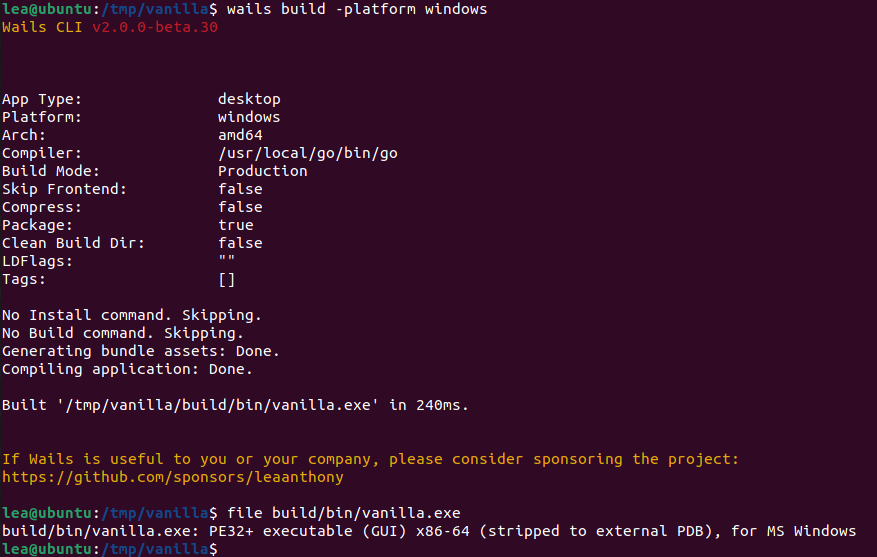 这个工具将没有外部要求,因为它将构成 Wails CLI 的一部分。 这意味着您仍然可以使用 wails build,它会完成它今天所做的所有事情。 但是,如果您想自定义构建过程,可以通过编辑 Taskfile.yml 文件来实现。 这也意味着您可以轻松理解构建步骤并根据需要使用自己的构建系统。